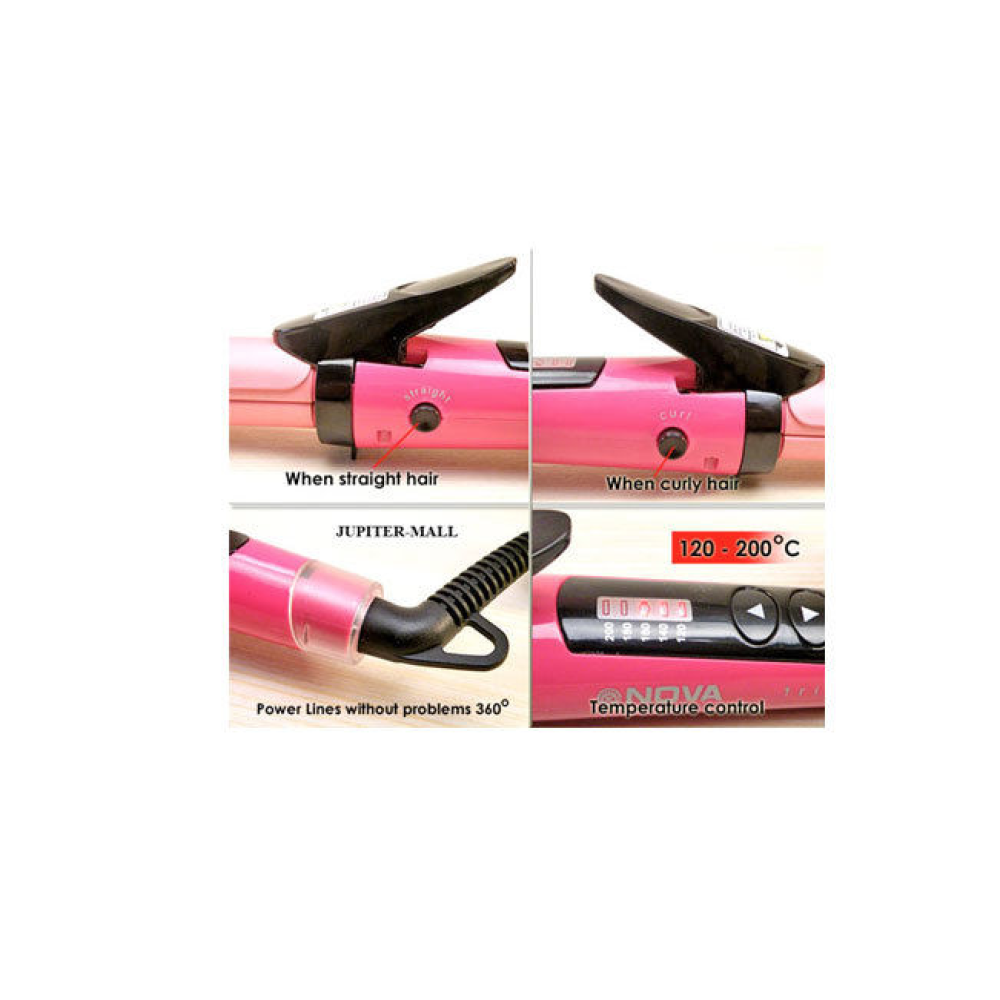 Плойка-утюжок 2 в 1 Nova NHC-1819 Гафрэ, щипцы для завивки локонов