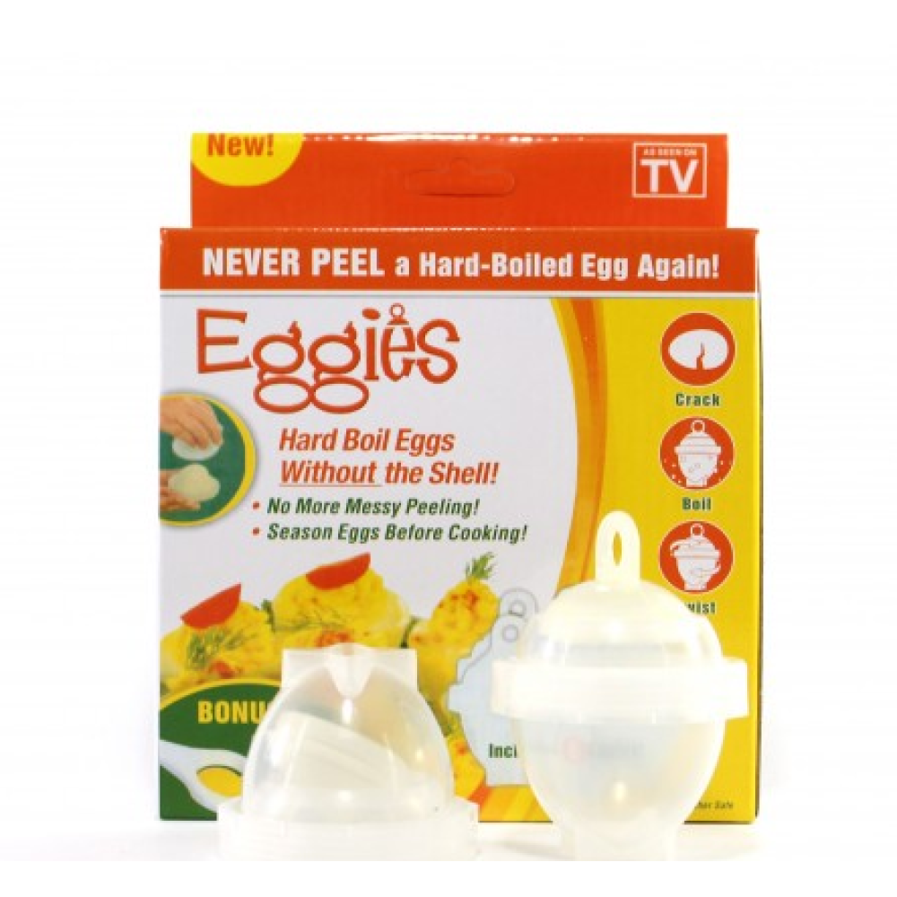 Формы для варки яиц без скорлупы Eggies (Эггиз) - это быстрый и простой способ как приготовить яйца вкрутую без скорлупы. Вам не придется тратить время на долгое очищение яиц от скорлупы. Яйцеварка сэкономит ваше время не только на чистку, но и ожидание того, когда яйца остынут. С помощью форм для варки яиц вы выбросите скорлупу еще до начала варки. Вы никогда не обнаружите в своем салате куски скорлупы. Вам нравятся яйца? Вы каждый день варите их и очищаете от скорлупы? Тогда пр едлагаем для Вас новый и удивительный способ приготовления сваренных вкрутую яиц без скорлупы. Для этого необходимо купить формы для варки яиц без скорлупы Eggies (Эггиз) . Обычным способом приготовить яйца вкрутую не так просто. Во время варки скорлупа прилипает и трудно очищается, теряется время. а Вы так спешите…