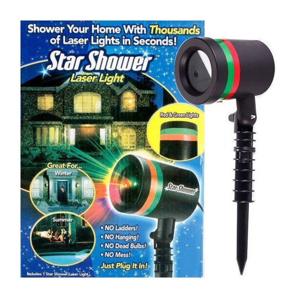 Представляем вашему вниманию уличную гирлянду Стар Шовер Лазер - лазерный проектор для украшения дома. Идеально подойдет для уличной илюминации дома, а также для украшения больших помещений. Звездный проектор Star Shower Laser Light может в одно мгновение преобразить любое жилище. Лазерный луч проектора добавит тысячи красочных звезд во всем доме. Стоит щелкнуть рычажком переключателя, и вокруг засияют тысячи звезд! При этом звезды могут быть разными. В приборе предусмотрены два режима. При желании можно любоваться зелеными звездами или зелеными с красным, которые будут светить одновременно.