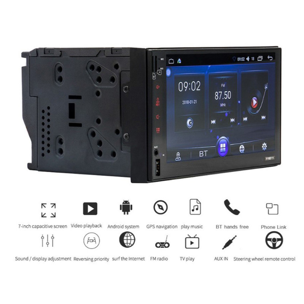Мультимедийно-навигационная система 6511 представляет собой универсальную 2DIN автомагнитолу с широким спектром функциональных возможностей (Bluetooth-модуль, GPS-навигация, Wi-Fi). Лицевая панель двухдинового устройства 6511 оснащена 7-дюймовым сенсорным HD-дисплеем с высоким разрешением (1024х600). Экран отличается особой яркостью и морозостойкостью. Операционная система магнитолы - Android 6.0.1.