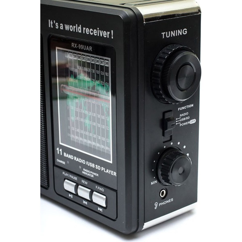 Достоинства: Встроеный аккумулятор(экономия на покупке батареек), длина антенны 80см, хороший приём станций, воспроизведение MP3,, WMA с карты SD и USB флэш диск, возможность подключения наушников или активных колонок, приятный дизайн.