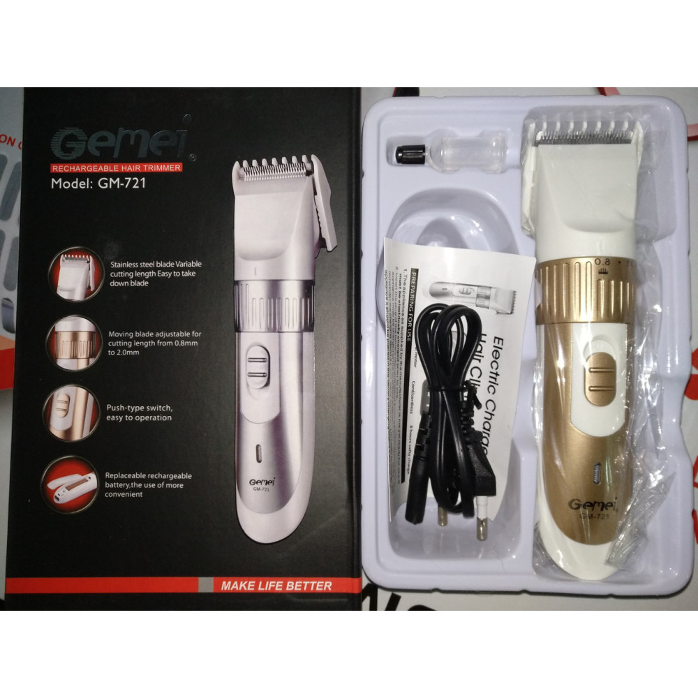 • Gemei 721 – триммер аккумуляторного типа, а это значит, что он работает без проводов. Нужно лишь перед процедурой зарядить триммер специальным зарядным устройством;