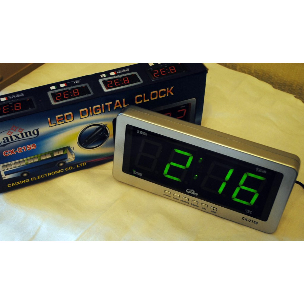 Современные электронные часы CX 2159 с ярким светодиодным LED дисплеем, подходят для использования в салоне авто. Имеющиеся крепёжные отверстия на обратной стороне корпуса, позволяют крепить часы на стену.