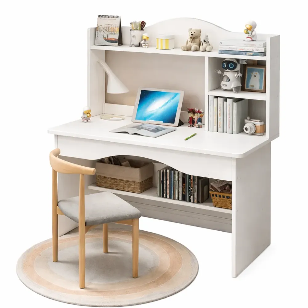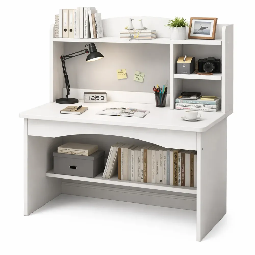 Письменный стол с полками QW-G257CΩ белый • Компьютерный стол для учебы, работы и домашнего офиса 100×121×48 см