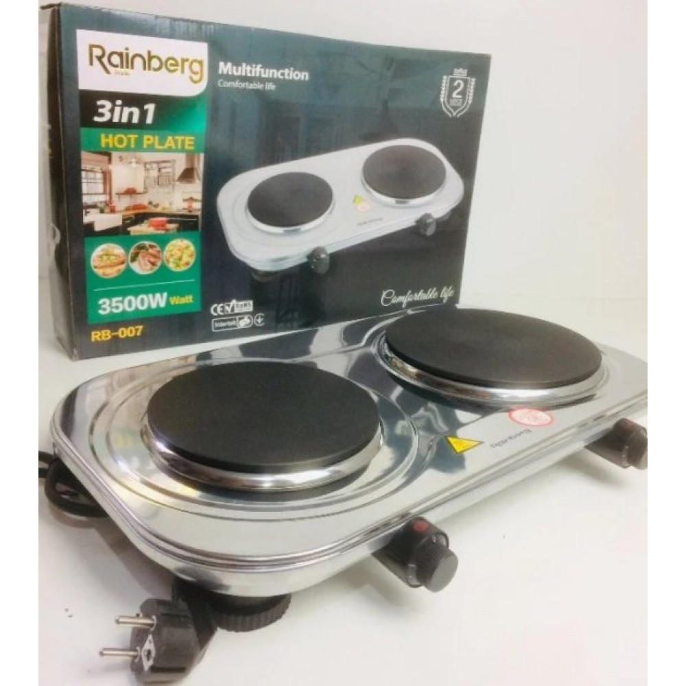 Плита двухконфорочная Rainberg RB-007 - отличный выбор для тех, кому нужна компактная плита без духовки для небольшой кухни. Благодаря небольшому размеру и весу плиту легко транспортировать.