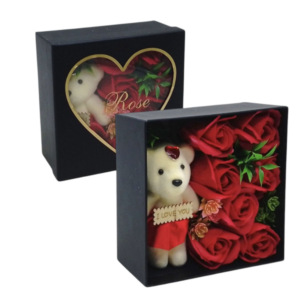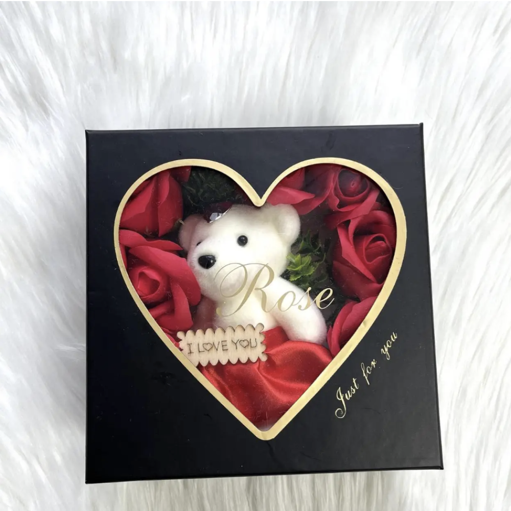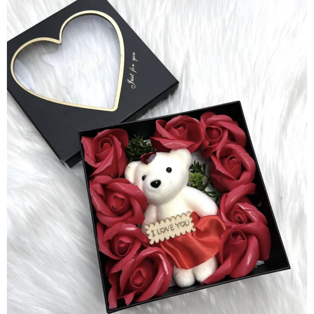 Создайте незабываемый момент с этим романтическим подарочным набором! Очаровательный плюшевый мишка и роскошные розы станут символом вашей любви и заботы. Изысканный дизайн, вечные розы и милый мишка с надписью «I LOVE YOU» делают набор идеальным подарком для любого повода