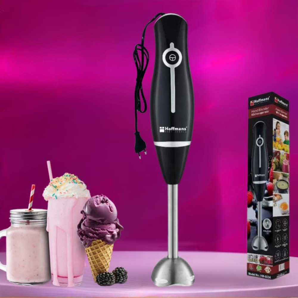 Hoffmans HM-8034 — это мощный и удобный погружной блендер, который станет незаменимым помощником на кухне. Благодаря мощности 800 Вт он с лёгкостью измельчает овощи, фрукты, орехи, готовит смузи, супы-пюре, соусы, кремы и пюре для детей.