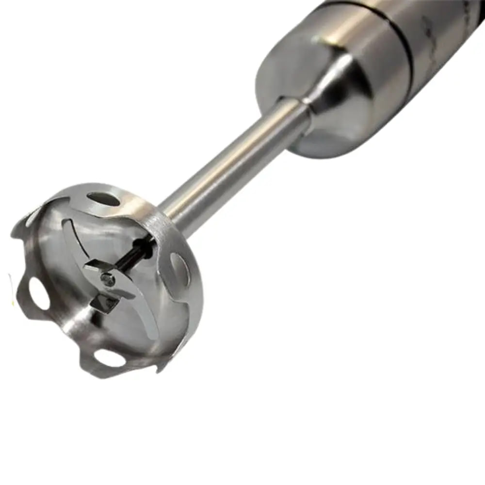 Металлическая ножка обеспечивает прочность и долговечность прибора, а эргономичная ручка позволяет комфортно управлять блендером одной рукой. Съёмные насадки упрощают уход за прибором и позволяют поддерживать его в чистоте.