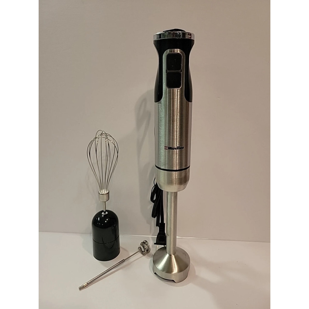 В комплект входят насадки для пюре, взбивания и измельчения. С венчиком легко готовить воздушные муссы, безе, коктейли и соусы. Насадка для пюре идеально подойдёт для приготовления детского питания из варёных овощей и фруктов, а стандартная блендерная насадка поможет создать однородные супы-пюре и кремовые смеси. Прочный металлический корпус и лезвия из нержавеющей стали обеспечивают долговечность и высокое качество работы