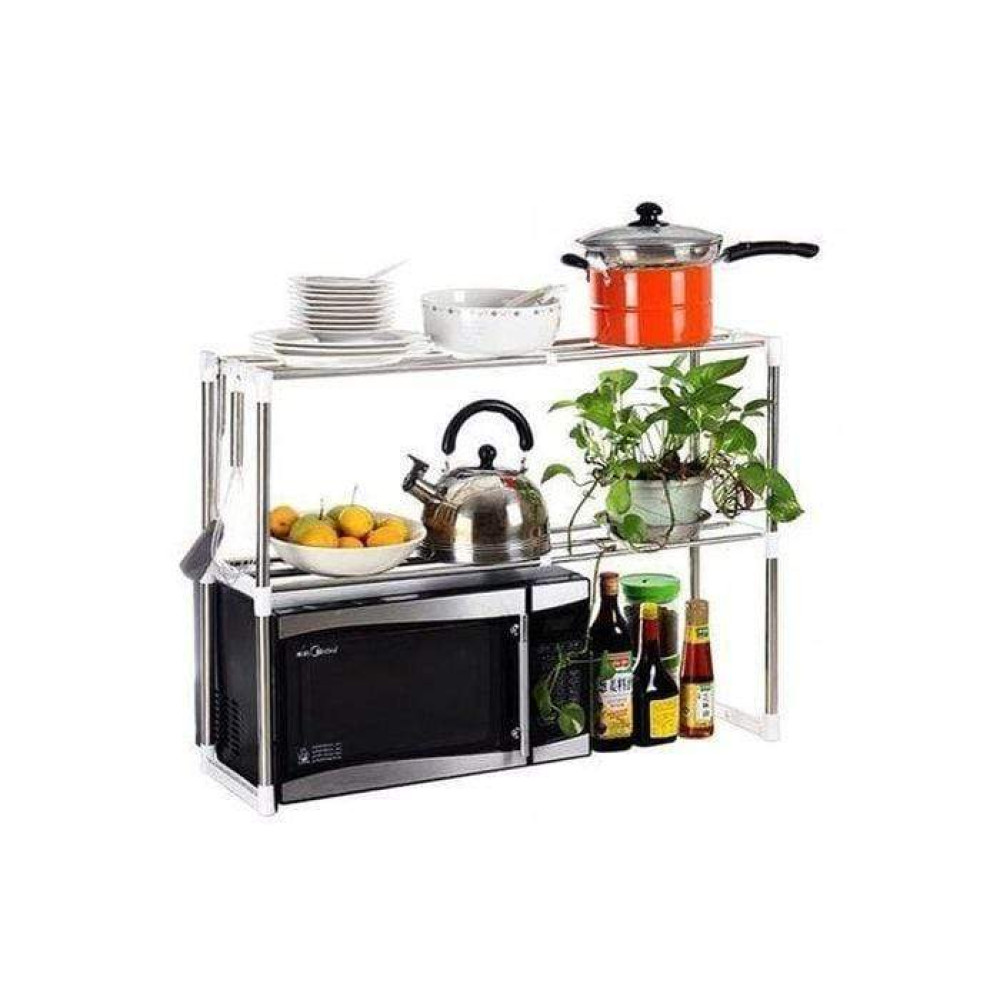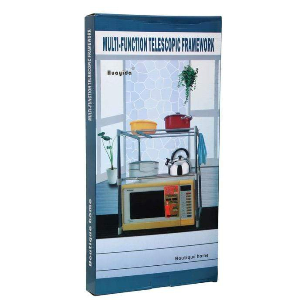 Стеллаж для микроволновки на два отделения Multi-Function Telescopic Framework – это прочный настольный стеллаж для микроволновки или другой бытовой техники.