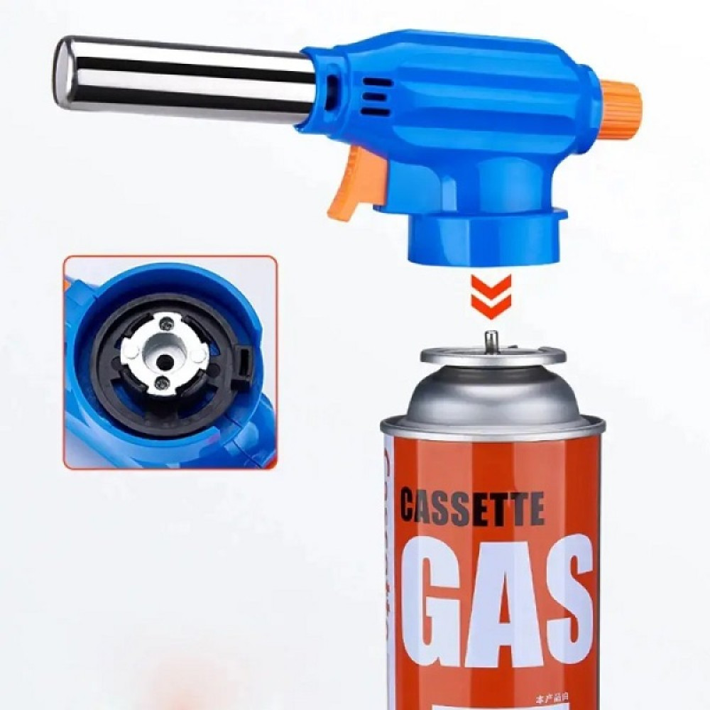 Удобно и практично - просто наденьте горелку на газовый баллон и закрепите ее, повернув. Портативная газовая горелка на баллончик с пьезоподжигом