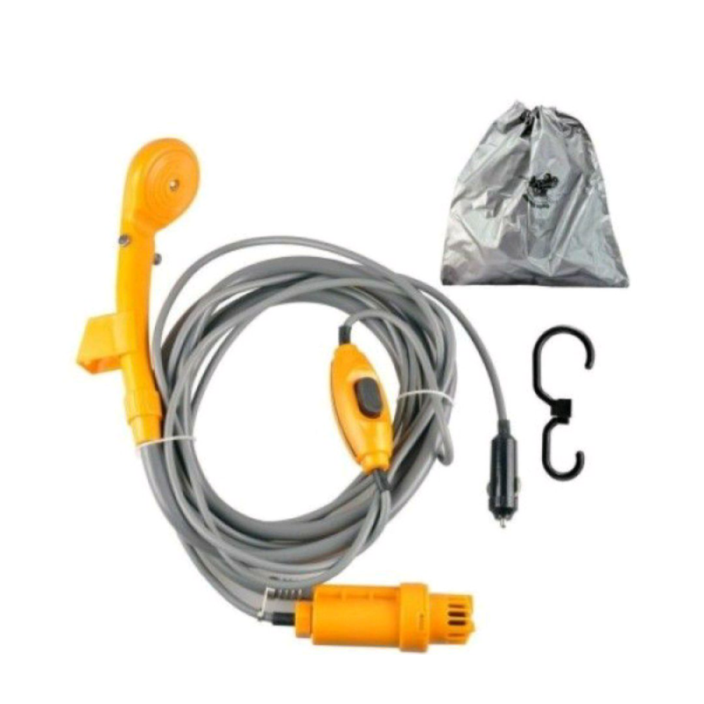 Электронасос автодуша работает от бортовой сети автомобиля с напряжением 12 В. Его можно использовать водителям грузовых автомобилей, катеров, лодок. Портативный авто-душ Automobile Shower Set во время перевозки складывается в чехол из полимерного материала, который предохраняет автомобиль от затекания воды.