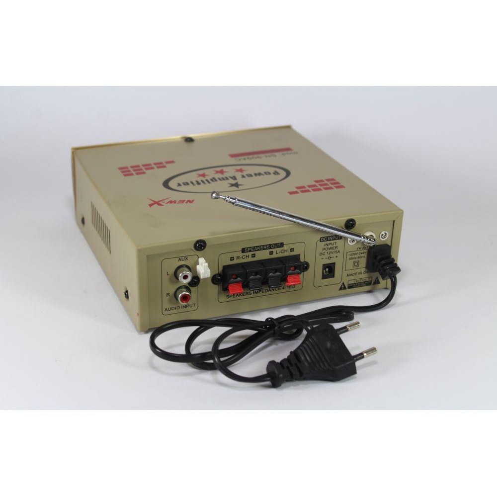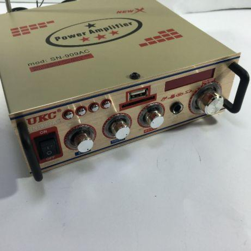 Усилитель звука - это основной элемент аудиосистемы. Основная задача усилителя- это получение сигнала от головного устройства и усиление его напряжения и тока до уровня, необходимого для нормальной работы динамиков. Если хотите звуком сразить наповал всех, то усилитель UKC AK-909 - это неотъемлемая часть Вашей звуковой системы. Усилитель разработан UKC AK-909D для людей, которые ценят качество звука, функциональность, мощность, проигрывать любимую музыку просто как никогда.