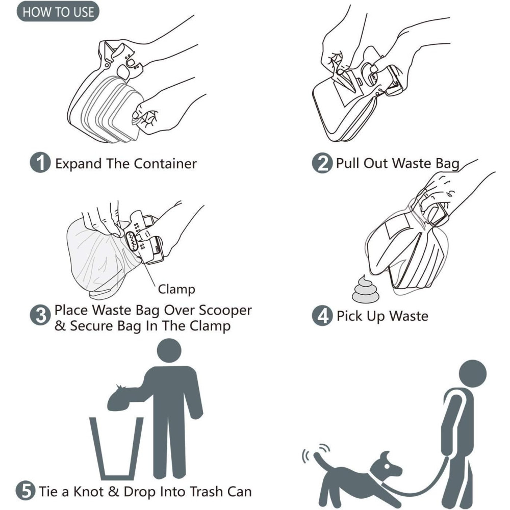 • Универсальный набор: поводок, совок-контейнер и одноразовые пакеты