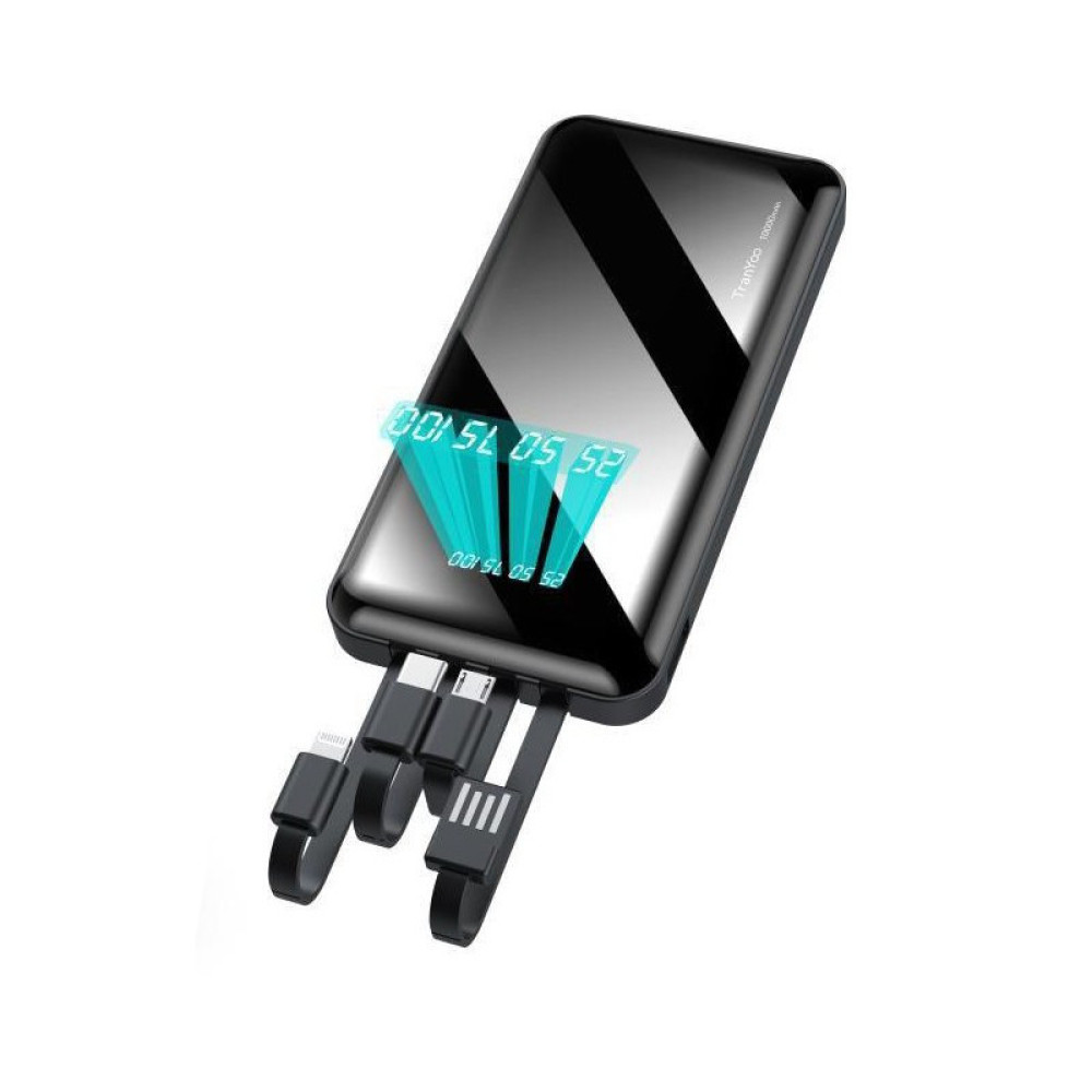 Power Bank 4LINE 20000mAh Внешний портативный аккумулятор с встроенными зарядными кабелями для microUSB ∙ Type-C ∙ USB ∙ iPhone ∙ Павербанк с цифровым зеркальным экраном для всех устройств 4 в 1