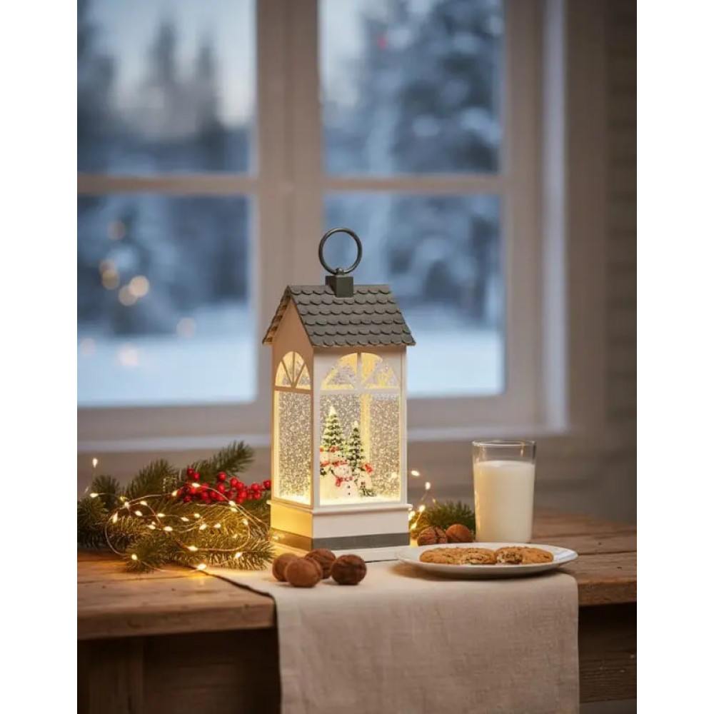 XMAS Новогодний ночник «Фонарь» WDL-24074B — это изящный праздничный аксессуар, который наполнит ваш дом атмосферой уюта и магии. Фонарь выполнен в классическом стиле с рождественскими элементами и оснащен мягкой LED-подсветкой, создающей эффект теплого сияния. Особенность ночника — декоративный «снегопад» с блестками, который очаровывает как взрослых, так и детей