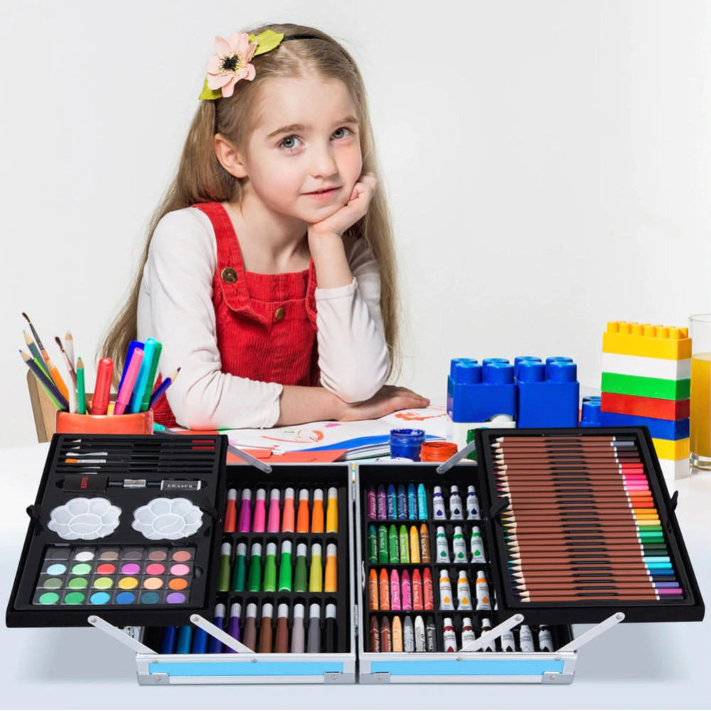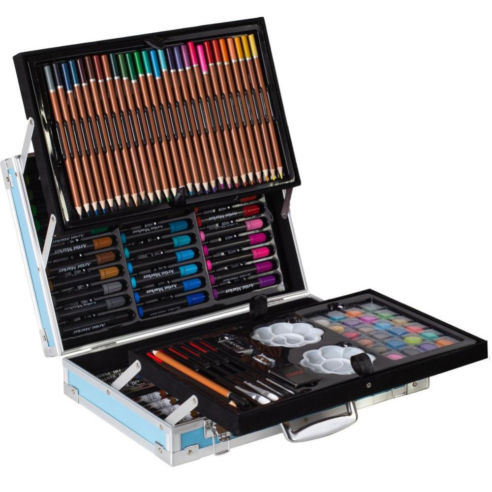 Набор для рисования из 144 предметов - это настоящая мастерская юного художника! В художественном наборе вы найдёте всё необходимое для создания красивых рисунков и художественных картин: широкую палитру фломастеров, карандашей, масляных красок и пастели, восковых мелков и акварельных красок, а также множество аксессуаров и полезных мелочей.