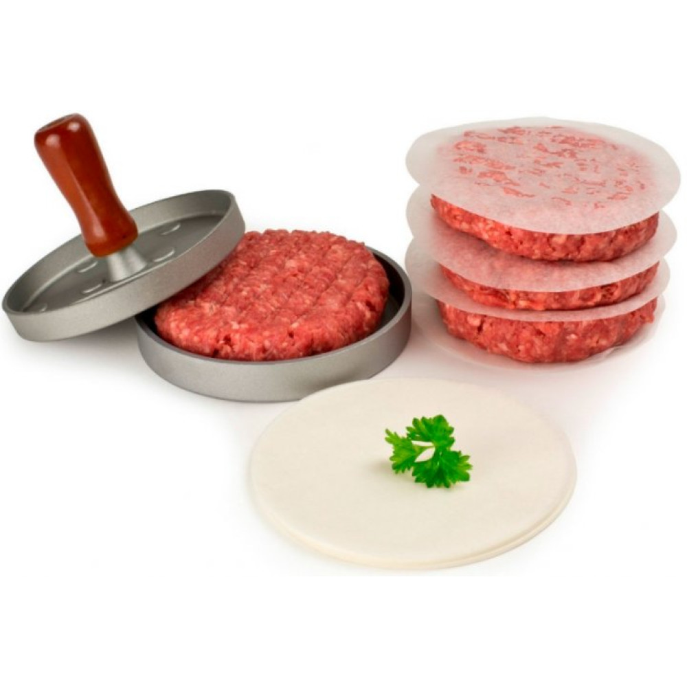 Пресс для гамбургеров и котлет металлический Пресс для котлет - быстрый и простой способ сформировать котлету, идеально подходящую к гамбургеру. Пресс изготовлен из стали. Удобная ручка выполнена из дерева. Использовать данную форму легко, достаточно положить подготовленный фарш на нижнюю часть формы, закрыть верхней частью и прижать. Вы получаете идеальную котлету классического вида. Для удобства извлечения котлеты из пресса можно использовать пергаментную бумагу....