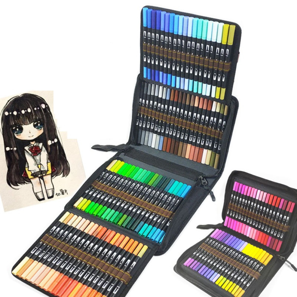 Профессиональный набор двусторонних акварельных маркеров, 100 шт · Художественные фломастеры для рисования в пенале