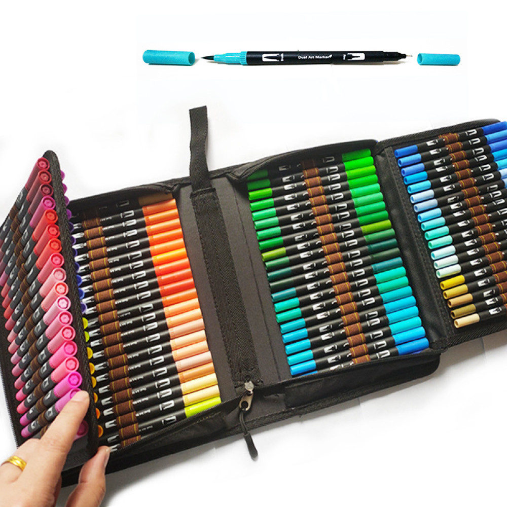 Профессиональный набор двусторонних акварельных маркеров, 120 шт · Художественные фломастеры для рисования в пенале