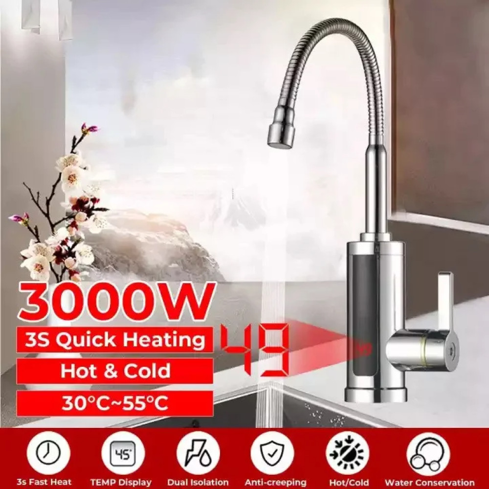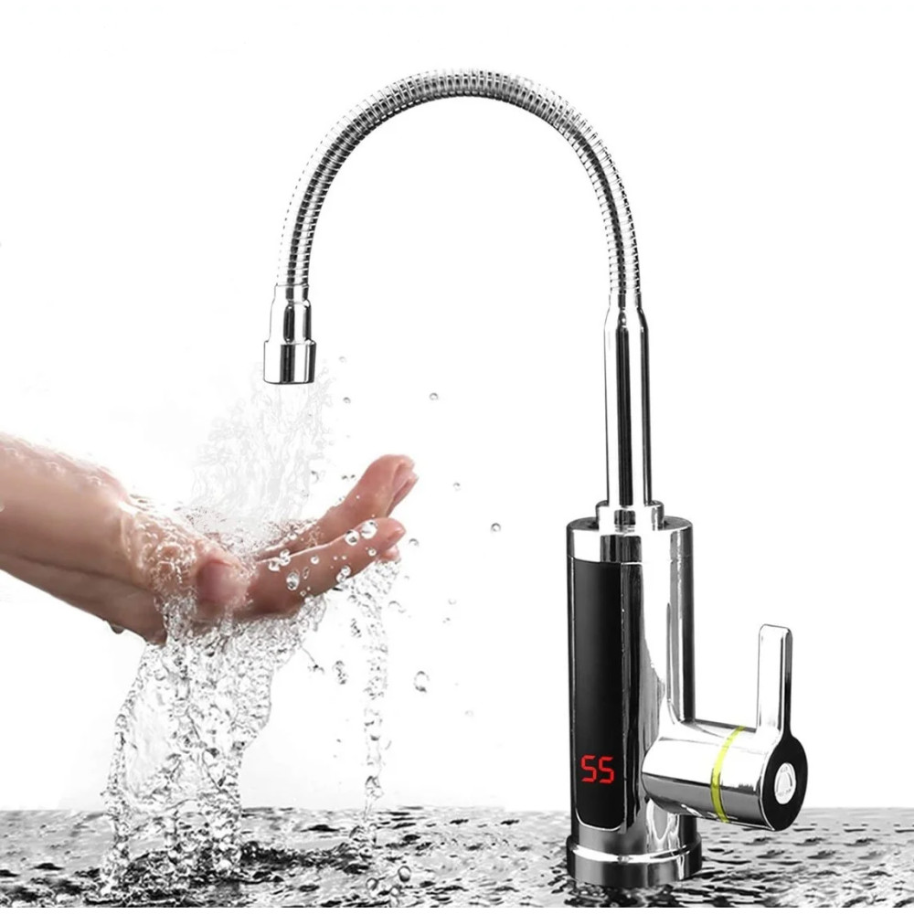 Проточный водонагреватель Delimano RX-011-1 ∙ Гибкий кран – бойлер с экраном хромированный пластик