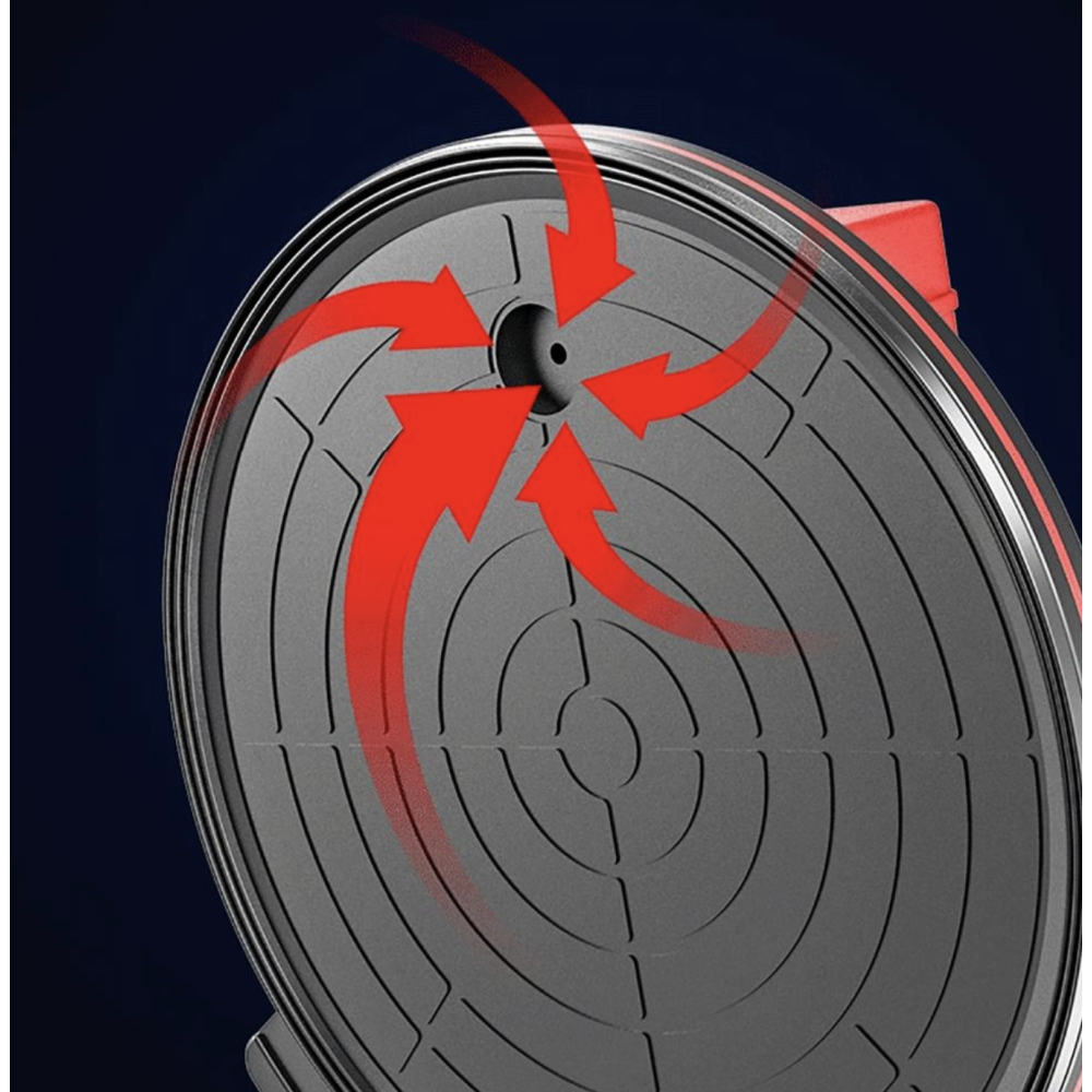Конструкция включает двухслойное резиновое основание диаметром 200–203 мм, устойчивое к износу и обеспечивающее надежное сцепление с поверхностью. Устройство работает от встроенного литиевого аккумулятора, который легко заряжается через USB Type-C, обеспечивая мобильность и автономность при работе