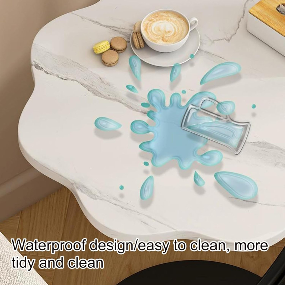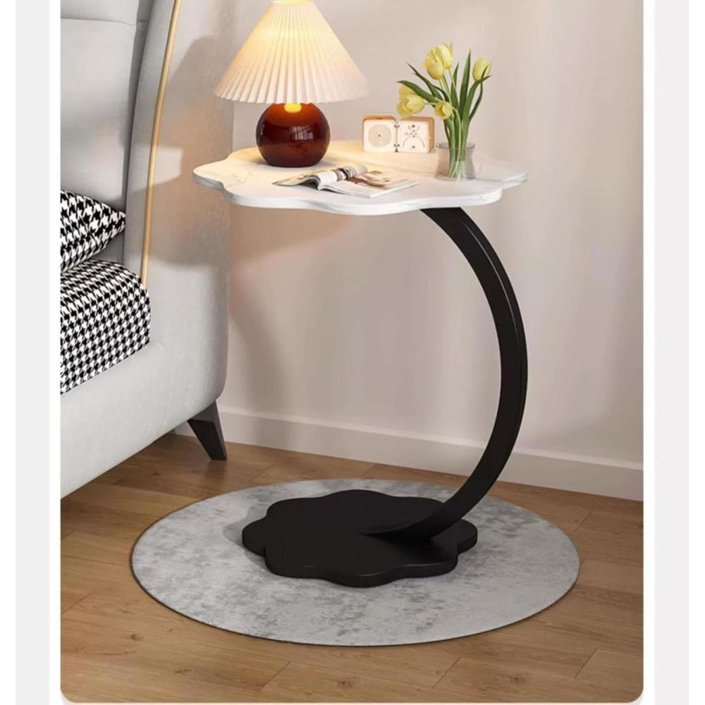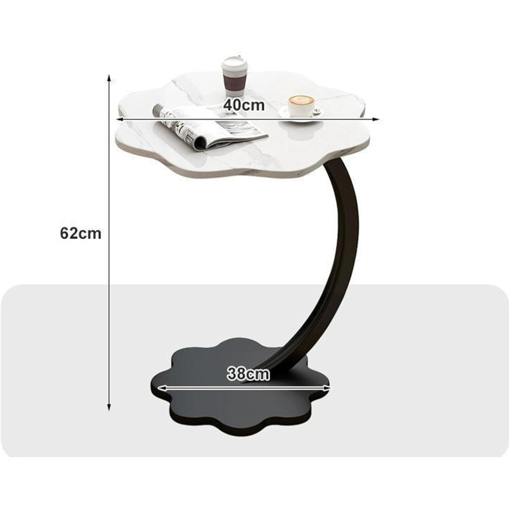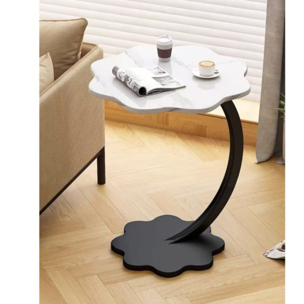 Приставной журнальный столик 64228, часто называемый «столиком-облаком» или «столиком в форме цветка» из-за характерной формы столешницы и основания, сочетает стильный дизайн и функциональность. Благодаря С-образной металлической опоре столик удобно приставлять к дивану или кровати, экономя пространство