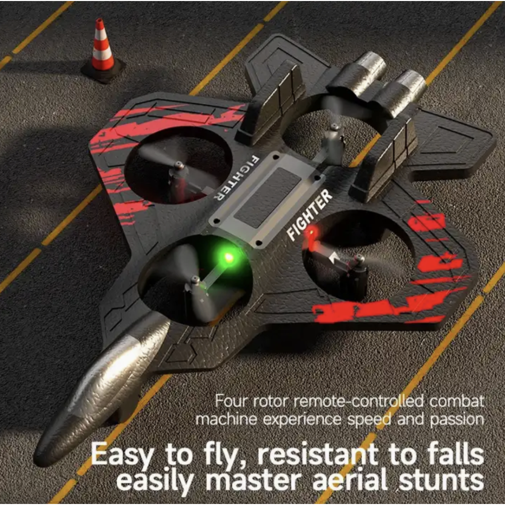 Радиоуправляемый самолет THUNDER CHARGE (L101) представляет собой уникальный гибрид самолета и квадрокоптера. Модель выполнена в стиле истребителя и оснащена четырьмя пропеллерами, что позволяет ей взлетать вертикально, зависать в воздухе и совершать маневры, характерные для квадрокоптеров. Некоторые модели внешне напоминают реальные истребители, такие как F-22 Raptor или F-35, что делает их особенно привлекательными для коллекционеров и любителей авиации.