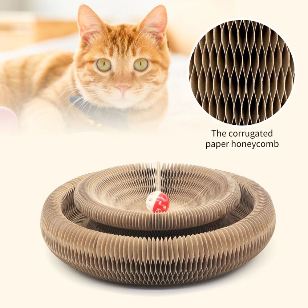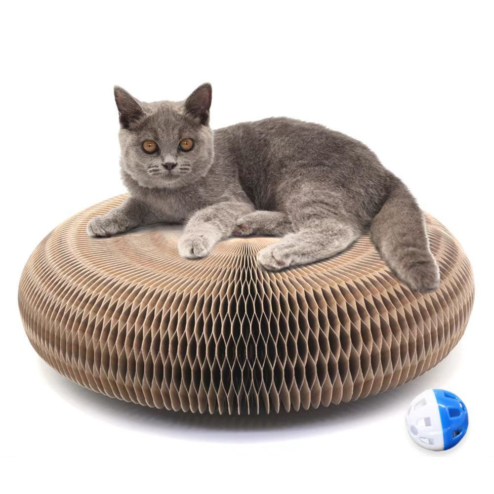 Раскладная игрушка – когтеточка 2 в 1 для кошек из гофры с мячиком Magic Organ Cat · Интерактивная фигурная игрушка для котов
