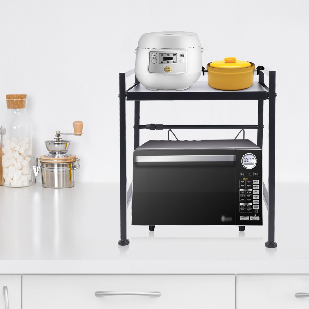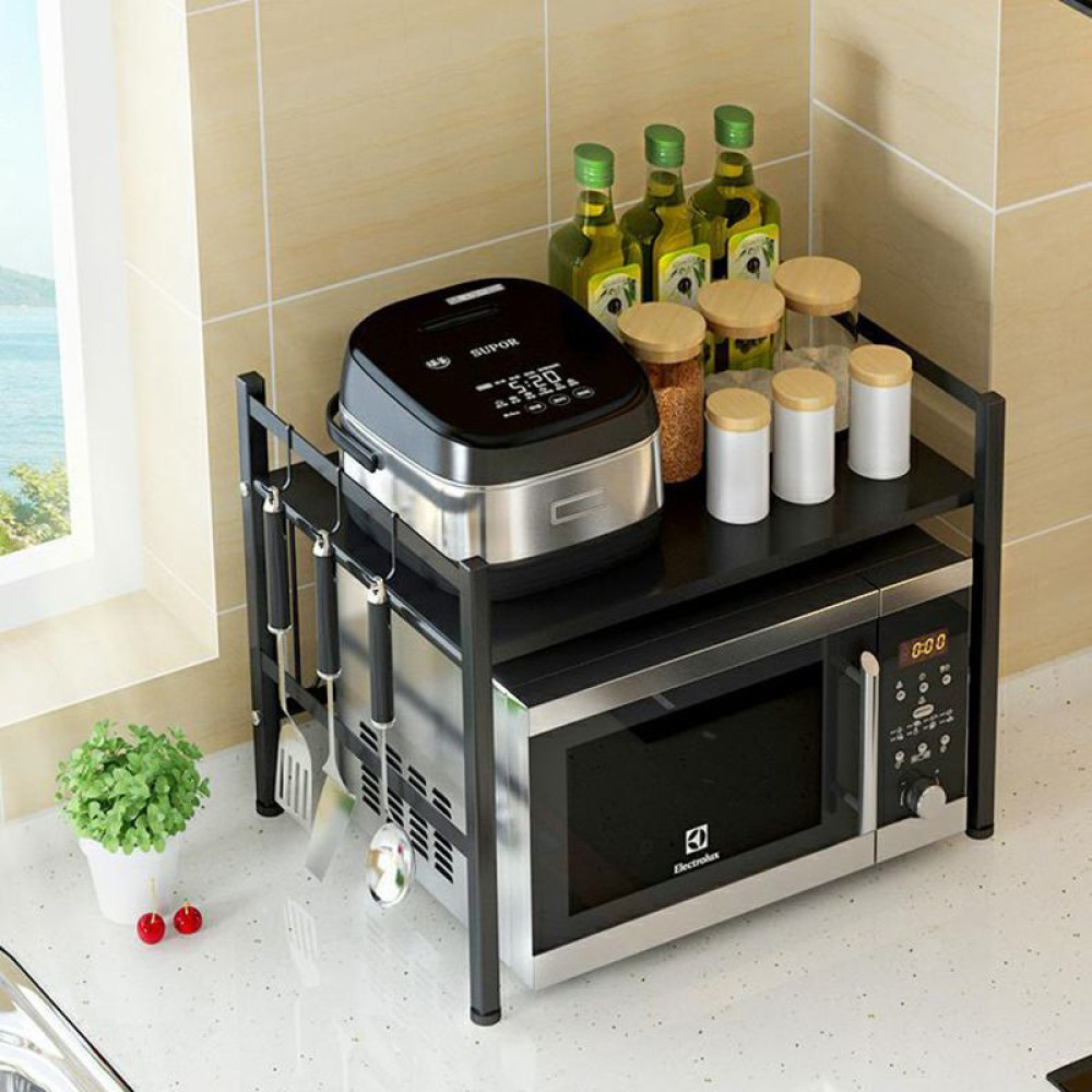 Раздвижной органайзер – стеллаж для микроволновой печи Blackwave rack с полкой и крючками для хранения кухонных аксессуаров · Нержавеющая сталь