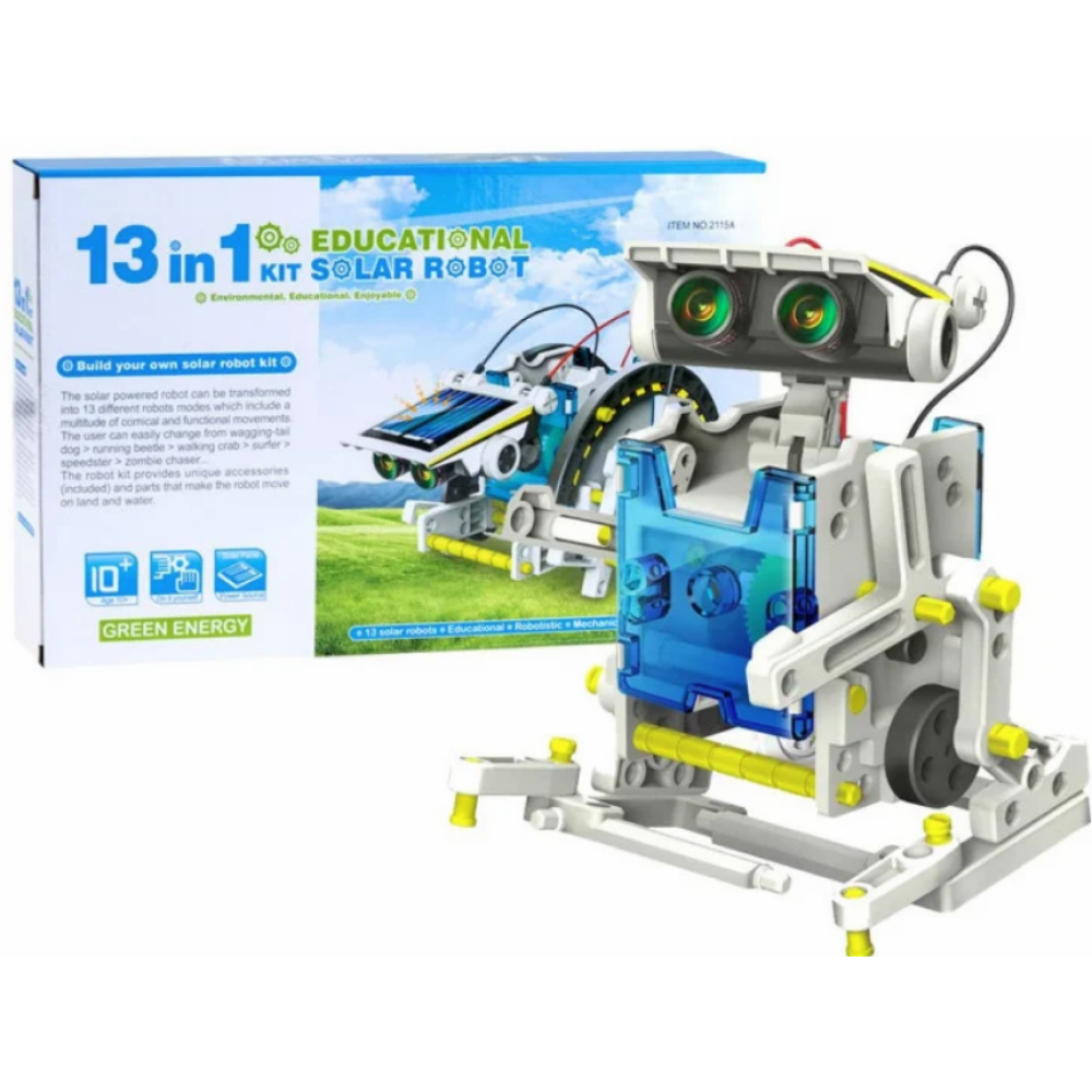 Конструктор Solar Robot робот 13 в 1 – конструктор из которого возможно собрать 13 моделей. Собранные модели приводятся в движение двигателями, которые питаются от солнечных панелей. Такой конструктор подходит как для новичков, так и для опытных роботостроителей. Может использоваться для обучения, хобби, моделирования, а также как элемент декора или развивающая игра.