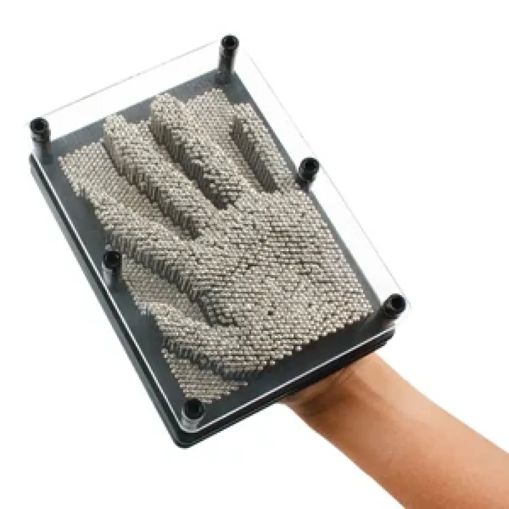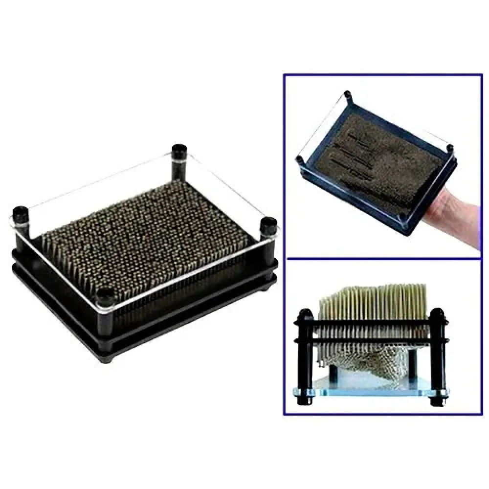 Стоит приложить предмет под эти гвозди, и Вы получите точную 3D копию с обратной стороны, а можно и нарисовать, выдвигая каждый стержень на нужное расстояние по очереди. Пин Арт 3D позволяет отображать реальные или любые существующие, пока только в Ваших мыслях и воображении предметы. Фантазируйте и воплощайте свои идеи! Поэкспериментируйте с различными предметами, попробуйте создать идеальный отпечаток. За этим увлекательным занятием можно провести много времени!