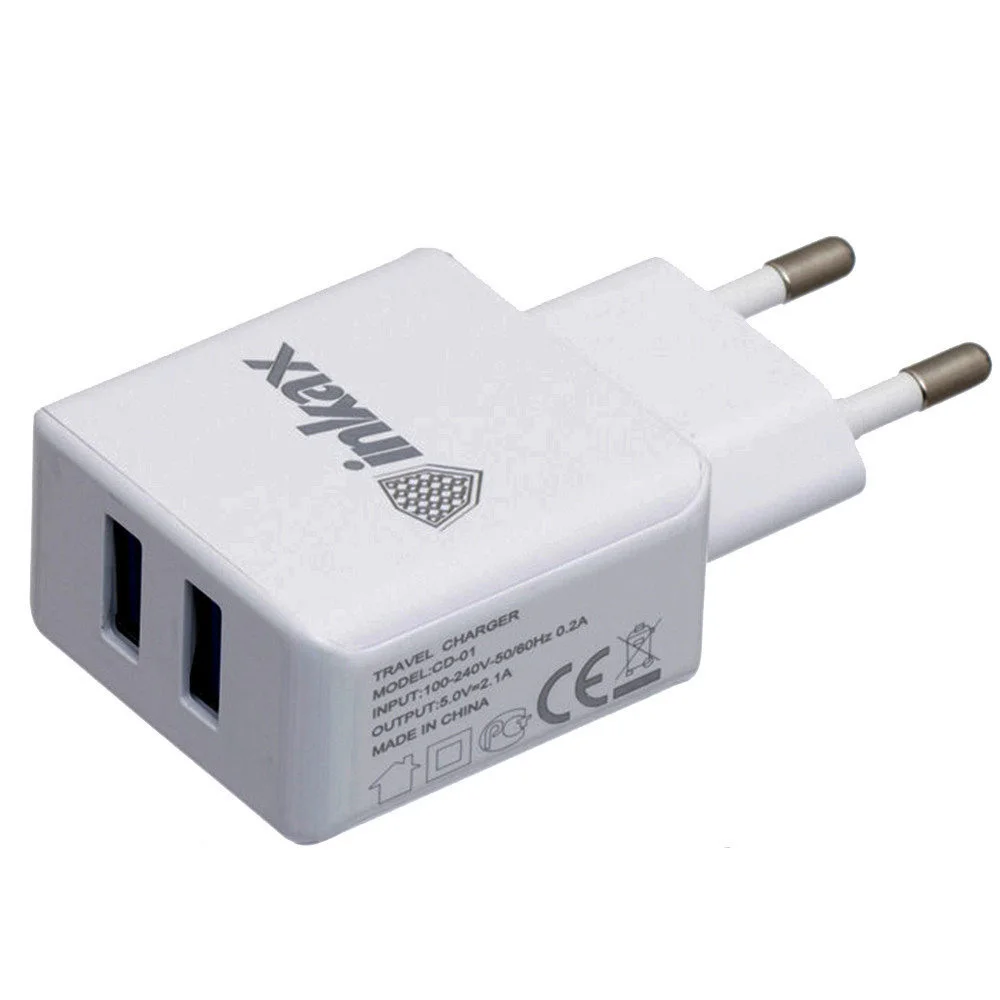 Сетевое зарядне устройство INKAX CD-01 - удобное и компактное зарядное устройство от компании INKAX, отлично подходит для подзарядки большинства мобильных устройств.Корпус устройства выполнен из прочных материалов и имеет достаточно компактные размеры.На адаптере расположены два USB входа для одновременной зарядки двух устройств. В комплекте с зарядным устройством идет USB кабель с разъёмом Lightning