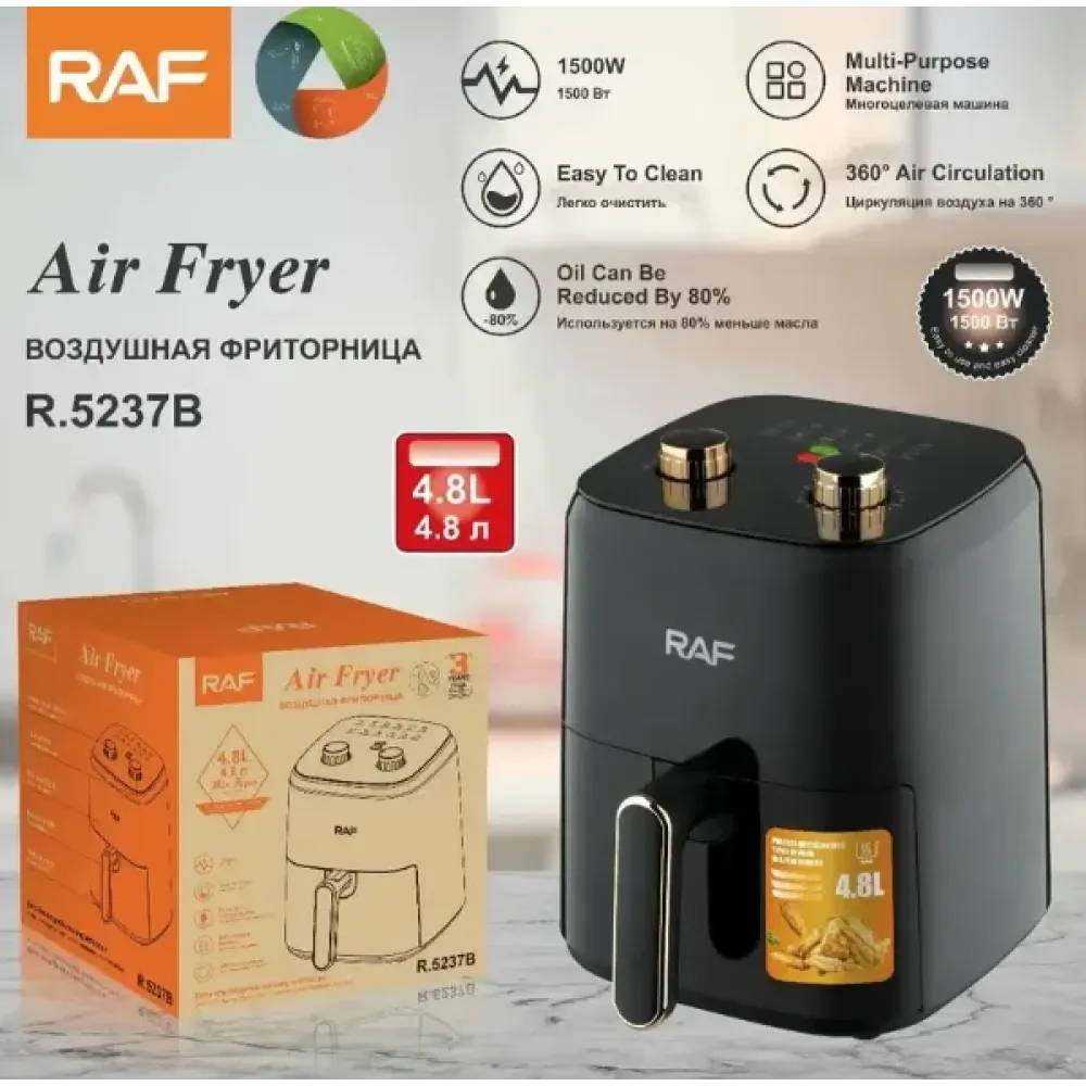 Аэрофритюрница RAF R.5237B Воздушный электрический фритюр для приготовления блюд без масла, 4.8 л