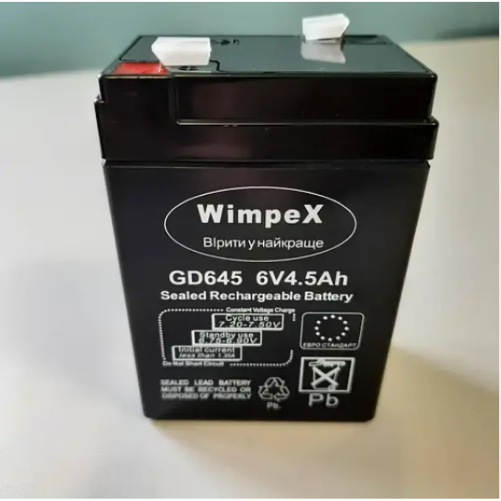 Аккумулятор Wimpex WX-645 6V 4.5Ah 2024 • Свинцово-кислотная герметичная батарея для детских машинок фонарей и UPS