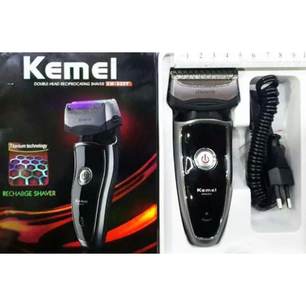Безопасная аккумуляторная бритва Kemei KM 8009, имеет плавающие бритвенные головки. Используется в беспроводной сети, удобно работать. Имеет титановую сетку, эргономичную ручку, работающая поверхность гибко вращается под изгибы лица. В ручке дополнительное лезвие для бакенбардов. Потребляемая мощность около 3 Вт, время работы примерно 15 часов, зарядки в районе 12 часов.