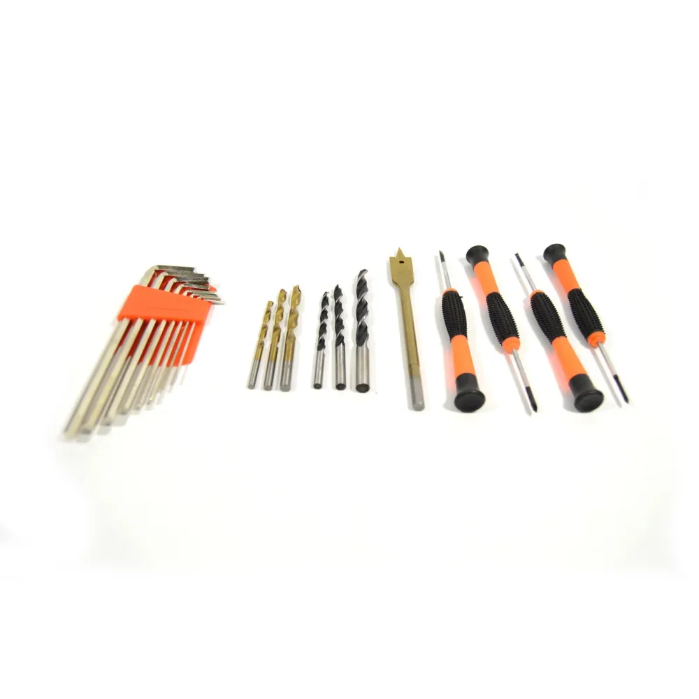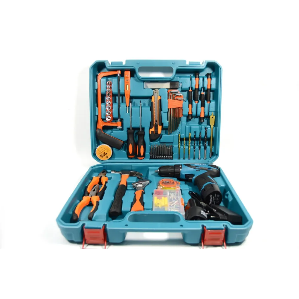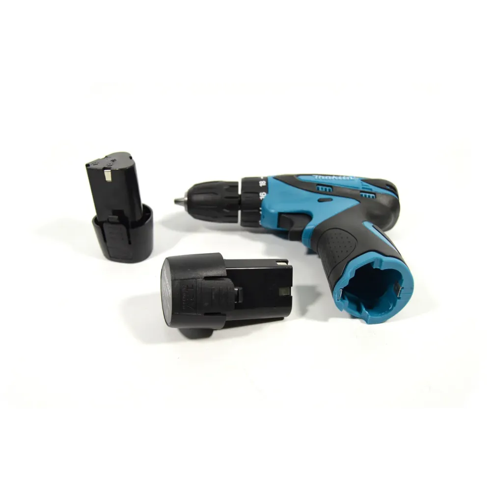 Аккумуляторный шуруповерт - дрель DF330DWE + Набор инструментов в кейсе 12 v C-J SET - надежный инструмент известного бренда пользуется большой популярностью как в домашних мастеров так и профессионалов. Хорошо зарекомендовал себя как при домашних работах, так и на стройке, сборке мебели. Обладает отличными техническими характеристиками, универсальности в применении, высокому качеству сборки и материалов. Стоит отметить также и комплектацию, ведь кроме самого устройства, в пластмассовом кейсе к нему идет также и большой набор инструментов различного типа и предназначения. В наборе инструментов, представлены: прибор для измерения тока, кусачки, отвертки, канцелярский нож, разводной ключ, молоток с гвоздодером, рулетка-сантиметр, изолента, набор головок под гайки, набор бит и набор сверл для сверления дерева и металла и др. Вместе с основным аккумулятором, в комплекте идет также и второй. Это позволит использовать устройство в два раза дольше, просто чередуя между собой два аккумулятора. В комплекте идет импульсное зарядное устройство для батарей, работающее от сети 220 В.