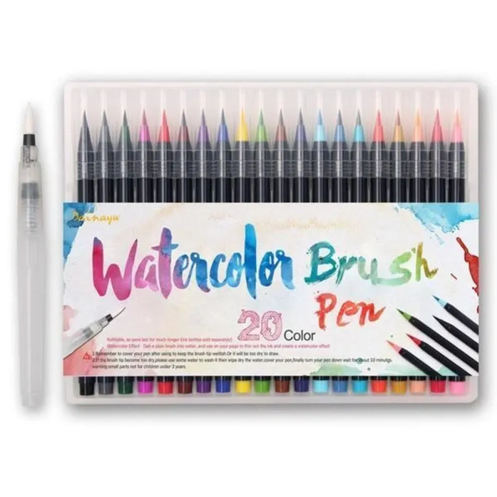 Акварельные маркеры для скетчинга 20 цветов · Художественный набор маркеров на водной основе для рисования с кисточкой · Подарок художнику