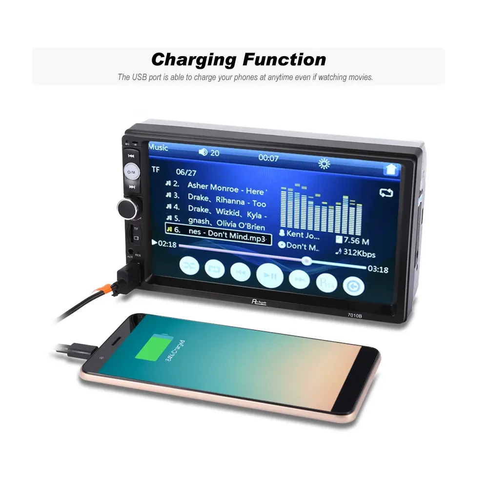 Автомагнитола 2Din 7010G диагональю 7" дюймов и разрешением 800х480. Для удобства пользователя предусмотрен разъем для подключения USB носителей и слот для карты памяти microSD.
