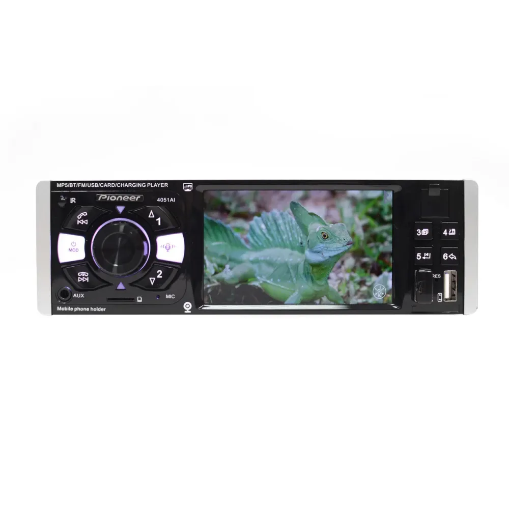 Автомагнитола 4051 AI 1Din ∙ Магнитола универсальная с экраном 4.1" DIVX + MP5 + USB + SD + Bluetooth - это автомобильная ВИДЕО магнитола нового поколения с дисплеем 4.1" дюйма! Теперь Вы сможете насладиться не только любимой музыкой, но и любимым сериалом или фильмом. Эта магнитола превратит Ваш автомобиль в кинотеатр !! Благодаря новой прошивке, модель имеет функцию множество полезных натроек. Pioneer 4051 AI имеет большое преимущество среди 1din автомагнитол. Также одной из особенностей данной магнитолы является наличие блютуз. Это отличная автомагнитола с хорошим звучанием и максимально низкой ценой! Кроме того, она имеет SD и USB разъемы, а также AUX.