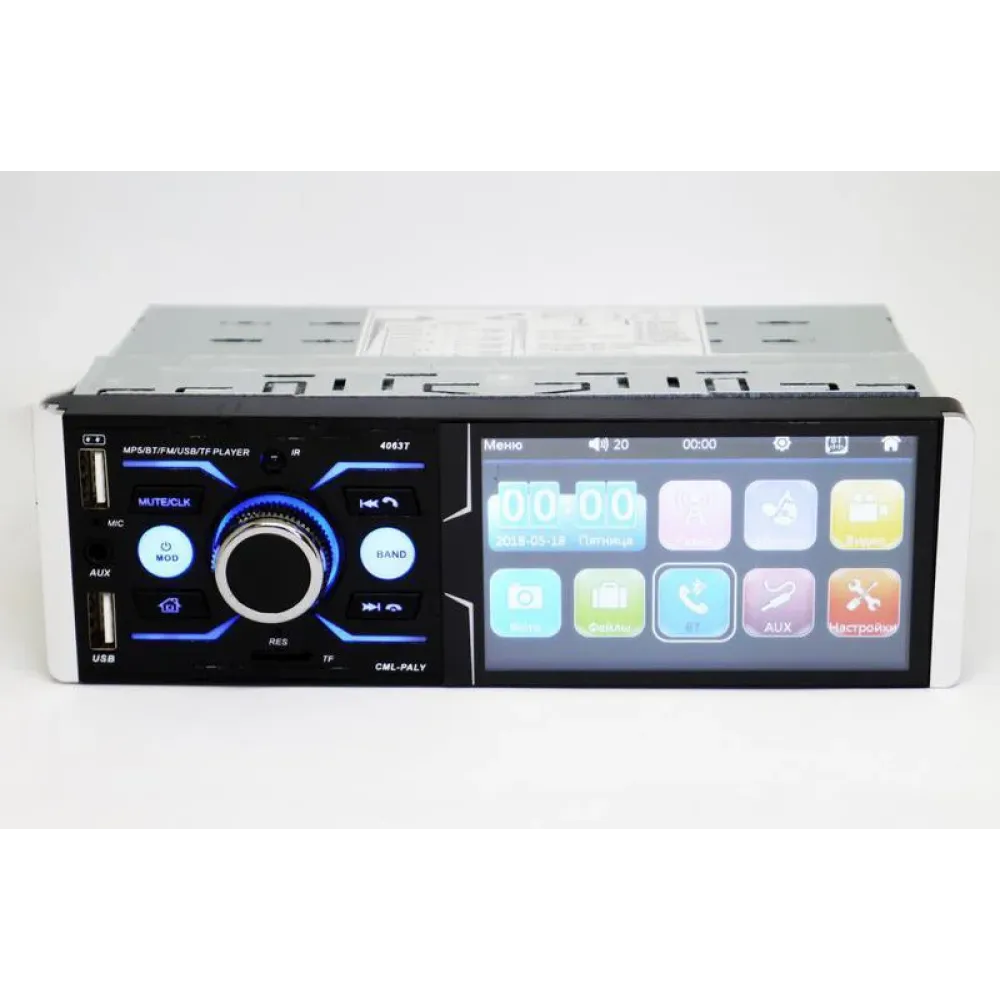 Автомагнитола 4063T – копия магнитолы Pioneer с дисплеем 4.1" дюйма для просмотра видео в формате 1080P (1920x108 Pixel) и качественным экраном. Автомагнитола имеет все функции для прослушивания и просмотра качественного аудио и видео, так же в данной модели есть возможность подключения камеры заднего вида. RGB подсветка. Встроенные разъемы для 2х USB (один для флешки, а для другой для зарядки телефона) позволит воспроизводить музыкальные композиции с носителей емкостью до 32гигабайт.