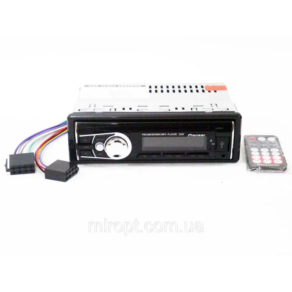 Автомагнитола Pioneer 3209 - Прекрасное решение для бюджетных целей! Автомагнитола Pioneer 3209 выполнена с яркой RGB подсветкой для подчеркивания своей стильности. Достаточно грамотное расположение всех функциональных кнопок, удобное меню, практичное использование всех функций автомагнитолы для прослушивания радио и записанной музыки. Легко, непринужденно и удобно управлять, даже с пульта Дистанционного управления. Каждый автолюбитель сможет оценить по достоинству данную автомагнитолу Pioneer 3209.