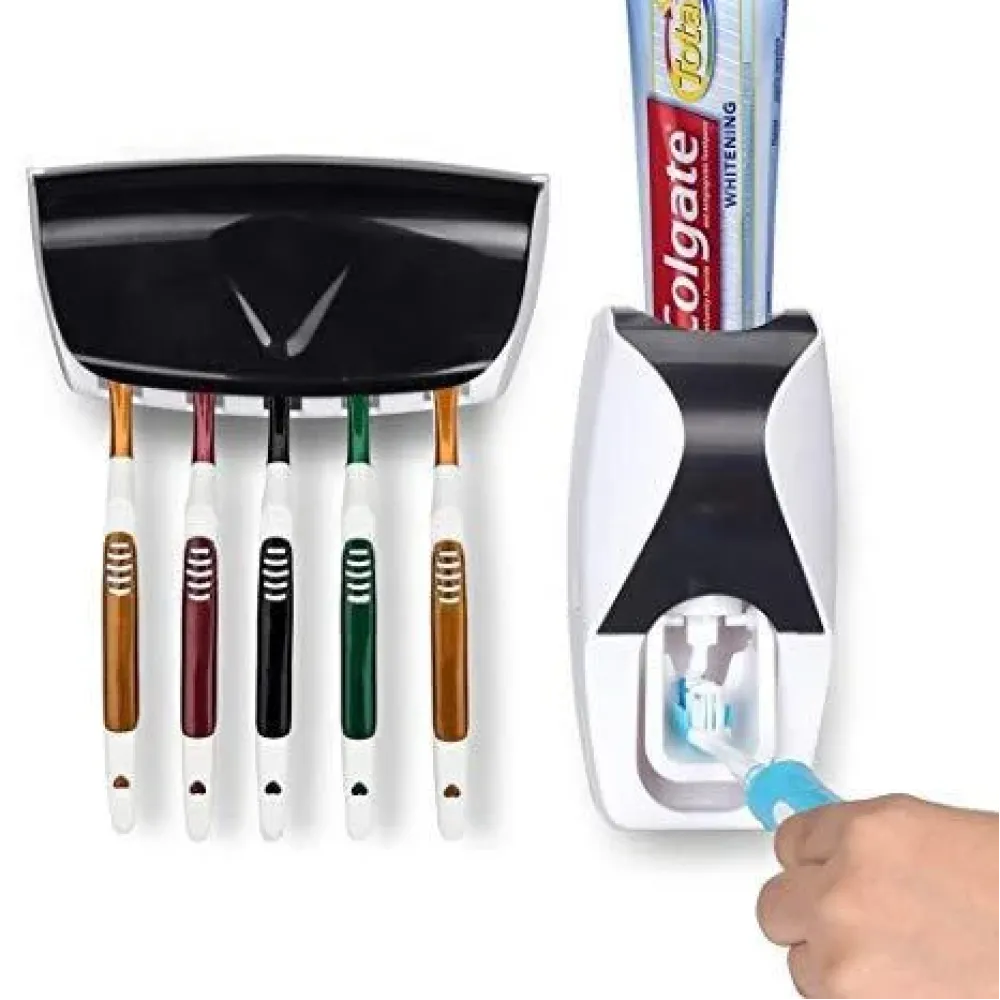 Автоматический диспенсер для зубной пасты с подставкой для щеток | Настенный дозатор зубной пасты
