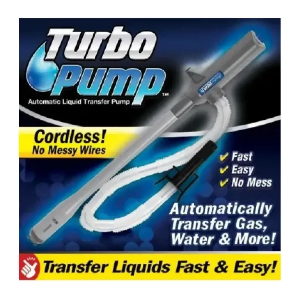 Турбонасос Turbo Pump - простой в использовании - просто закрепите зажим и включите насос, чтобы легко переместить воду, масло и другие жидкости. Насос имеет датчик автоматической остановки, который останавливает перекачивание и выдает звуковой сигнал, когда бак полон. Секрет заключается в технологии турбо-сифона, который перекачивает практически любую жидкость до последней капли!