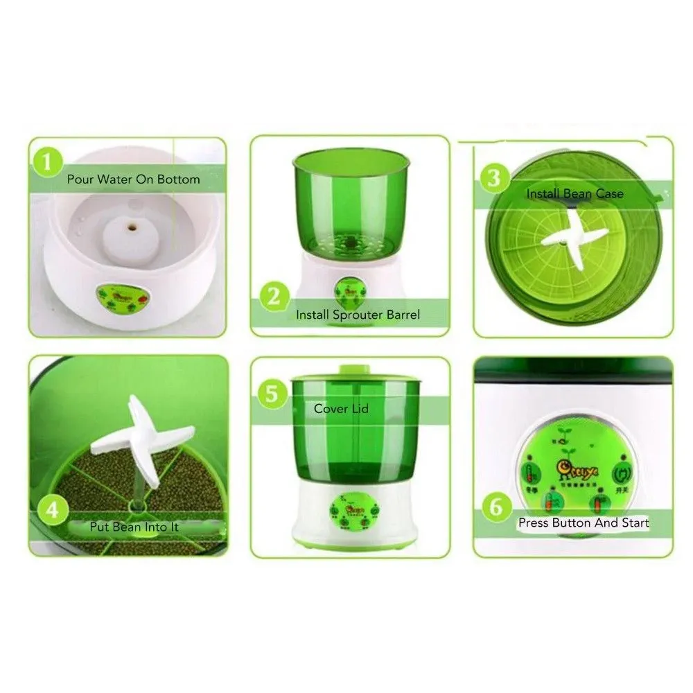 С проращивателем вы быстро получите пророщенные семена, свежую зелень или побеги сои, ржи, овса, тыквы, пшеницы, чечевицы, зеленого горошка, пшена, ячменя, редиса, подсолнечника, фасоли...