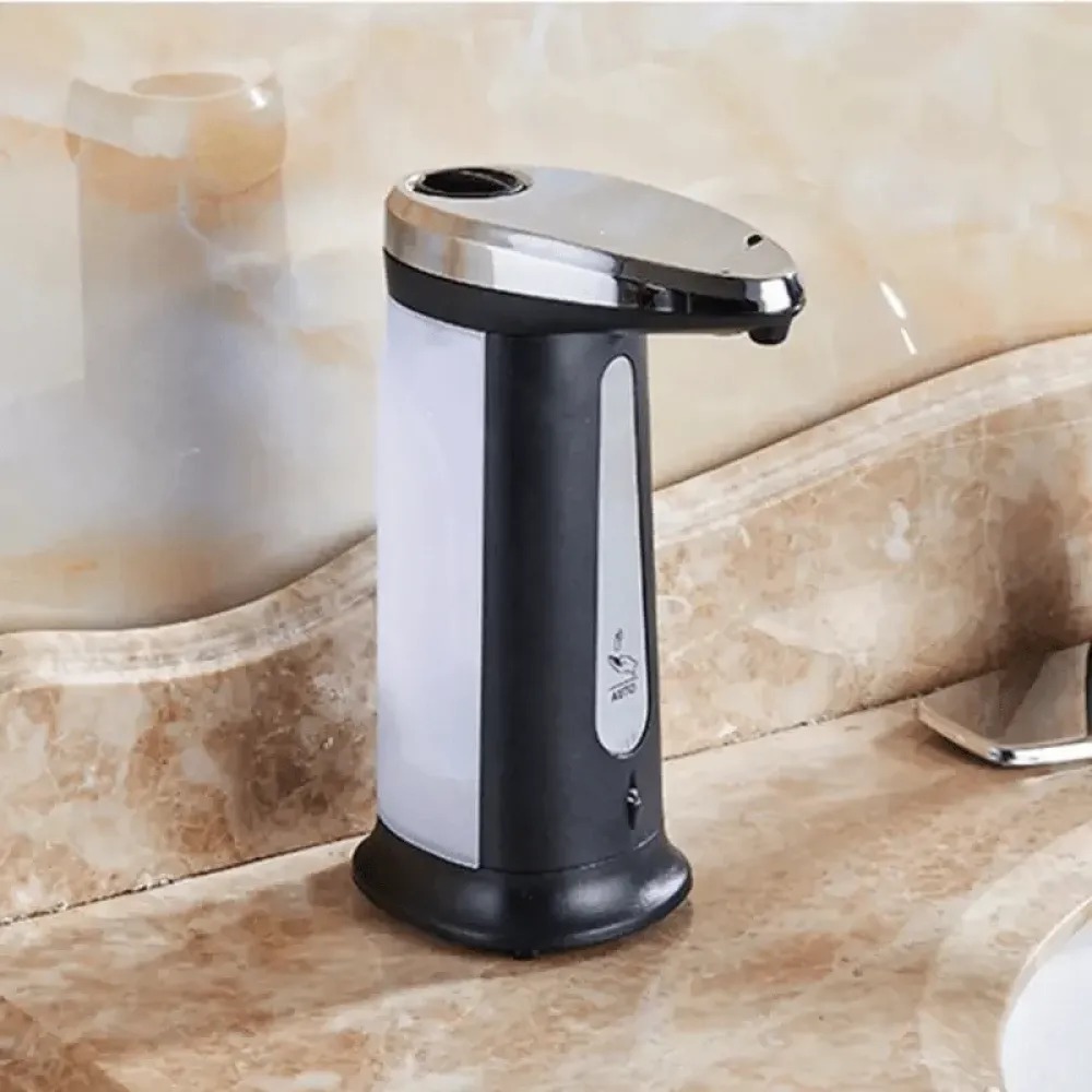 Сенсорный дозатор питается от батареек ААА (4шт). Объем дозатора мыльницы составляет 380 мл.