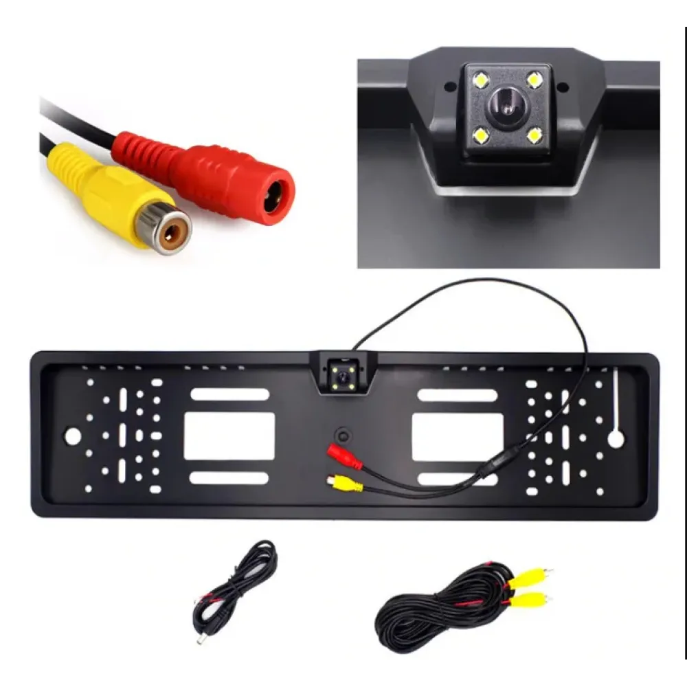 Камера в номерной рамке завоевала большую популярность среди автомобилистов благодаря своей универсальности. Основное ее преимущество это особенность установки. Ведь ее можно установить практически на любой автомобиль вместо рамки номерного знака. Камера в номерной рамке имеет центральное расположение камеры, что дает возможность максимально по центру получать изображение с камеры. Камера в номерной рамке работает на базе сенсора Ccd , что дает возможность работать при низком освещении без инфракрасной подсветки и также есть возможность включать 4 светодиода подсветки расположенных в углах камеры. Так же к характерным превосходством следует отнести возможность регулировки угла наклона. Изменения угла наклона дает возможность выставить для себя оптимальное расположение линий парковочной разметки.