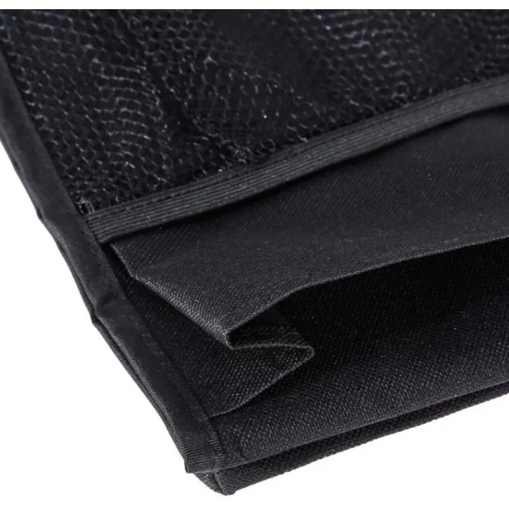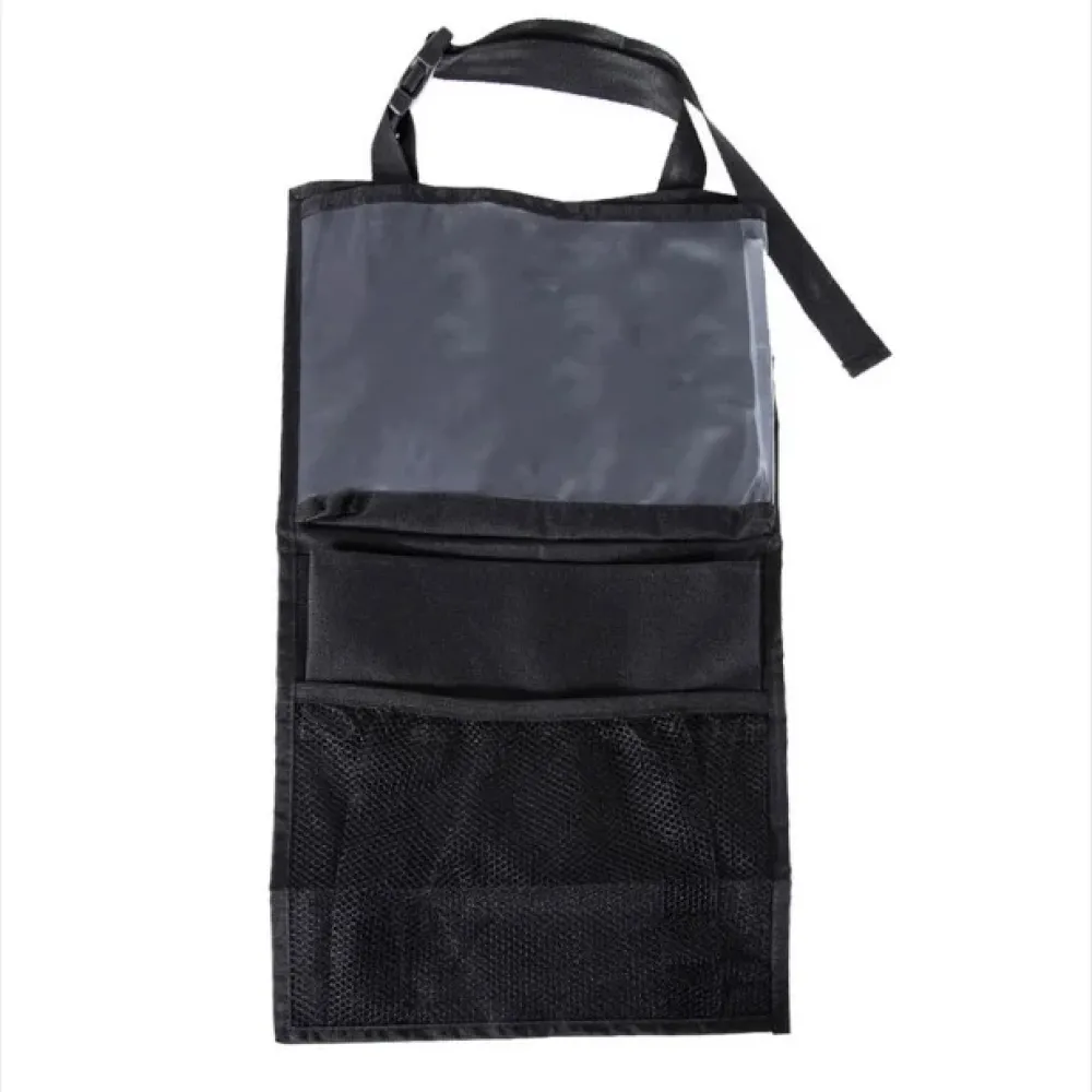 Органайзер изготовлен на прочной тканевой основе, с сетчатыми и целлулоидными карманами. Крепится к спинке сидения за подголовник ремнем с быстроразъемной клипсой.
