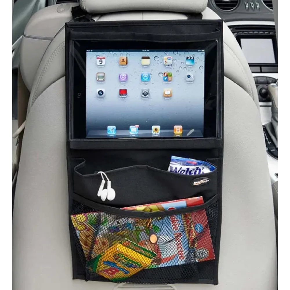 А верхний прозрачный карман позволяет удобно разместить в нем даже планшетный ПК с большим 10-ти дюймовым экраном, превратив спинку сидения в импровизированный медиацентр.