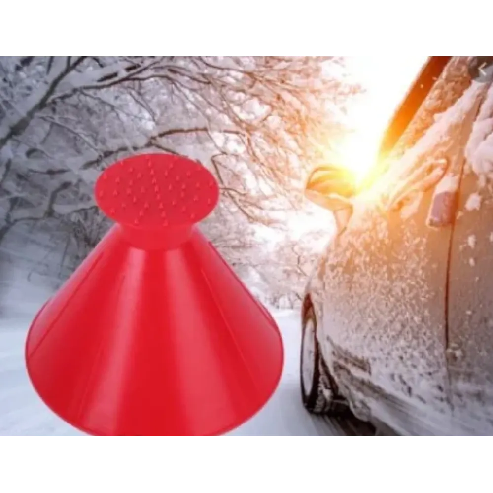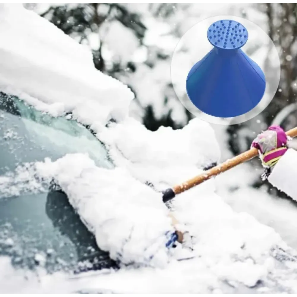 Конусообразный скребок для удаления льда и снега очистит стекла Вашего автомобиля намного быстрее; чем привычный всем традиционный скребок. Данный скребок сделан из пластика; очень легкий; его удобно держать в руке и он не царапает стекло! Для удаления снега достаточно водить круговыми движениями широкой частью скребка по стеклу. Вторая сторона скребка; может быть использована как ледокол.
